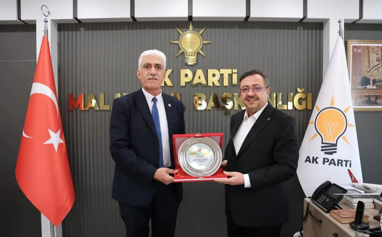 CHP İl Başkanlığı’ndan ayrılan heyet, aynı gün içinde, aradan sadece birkaç saat geçtikten sonra bu kez AK Parti Malatya İl Başkanı Ali Bakan’ı ziyaret etti. Burada da üreticilerin durumu değerlendirildi, desteklerden dolayı teşekkür edildi ve Ali Bakan’a da şükran plaketi takdim edildi. Gülerek verilen pozların ardından Ak Parti İl Başkanı Ali Bakan bir açıklama yaparak Ziraat Odası Başkanlarına nazik ziyaretlerinden dolayı teşekkür etti.