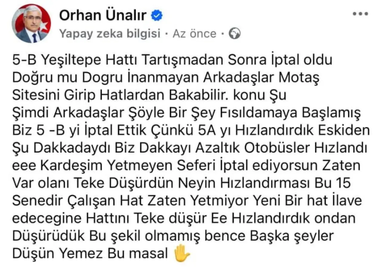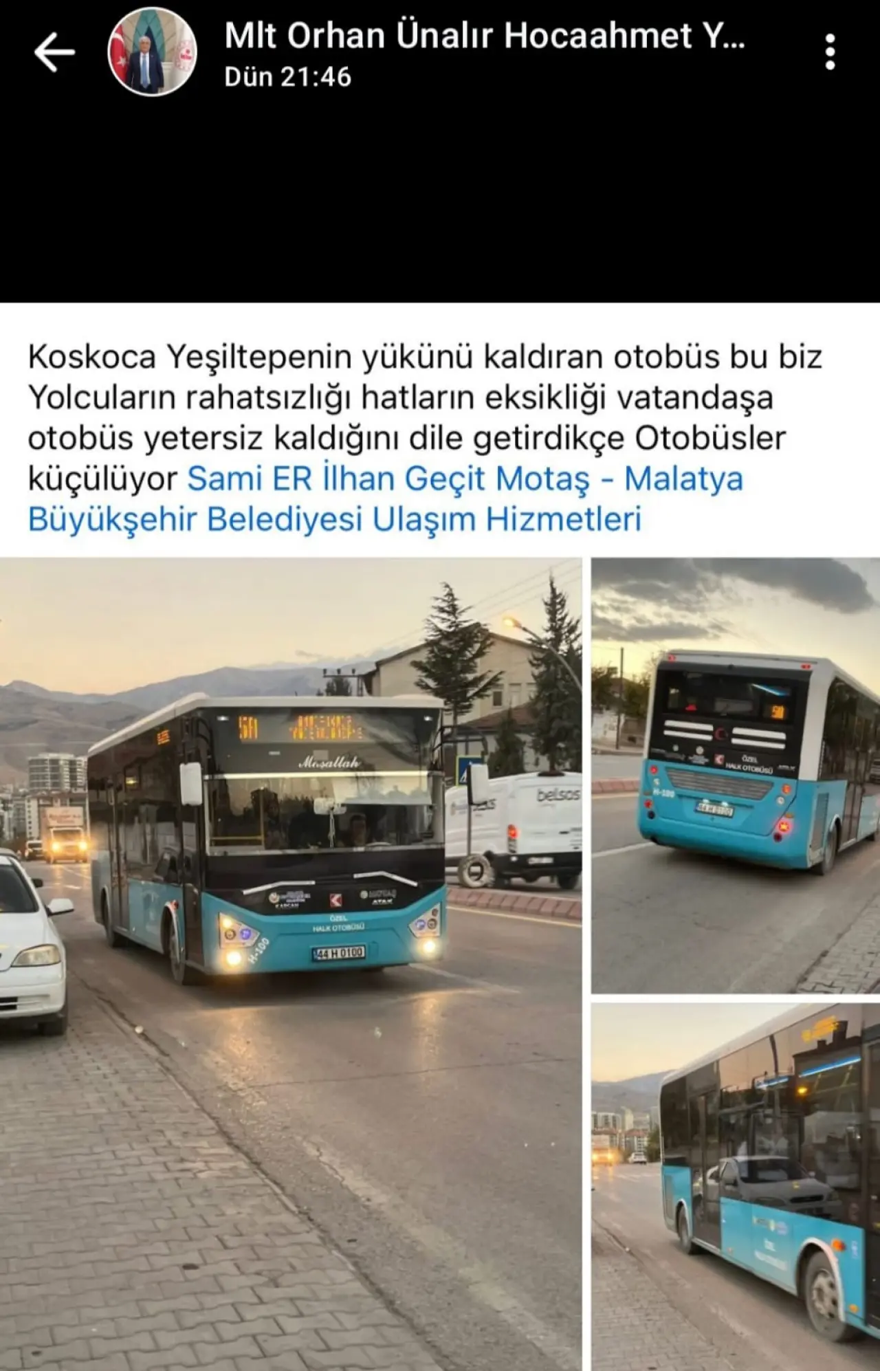 “Koskoca Yeşiltepe’nin yükünü taşıyan otobüs bu! Halk mağdur, biz çözüm bekliyoruz. Ama otobüsler azalıyor, küçülüyor. Sayın Sami Er, Sayın İlhan Geçit… Artık bu sesi duyun! Bu şehirde insanlar sabrının son noktasında.”