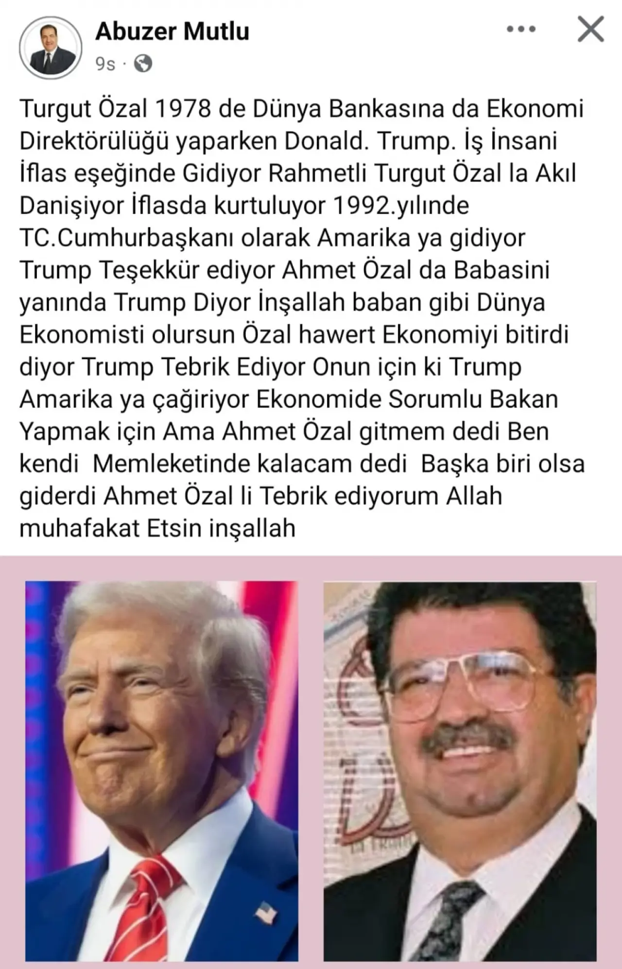 Malatyalı Abuzer Mutlu: “Turgut Özal, Donald Trump’ı İflastan Kurtardı, Ahmet Özal’a Bakanlık Teklifi Geldi” dedi Malatya ve ülkede en çok konuşulan oldu.