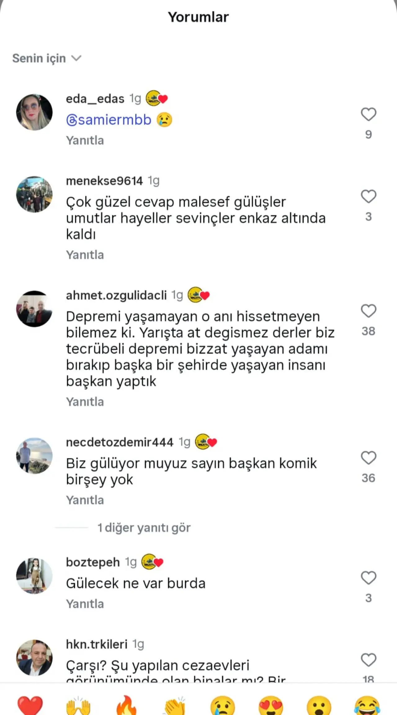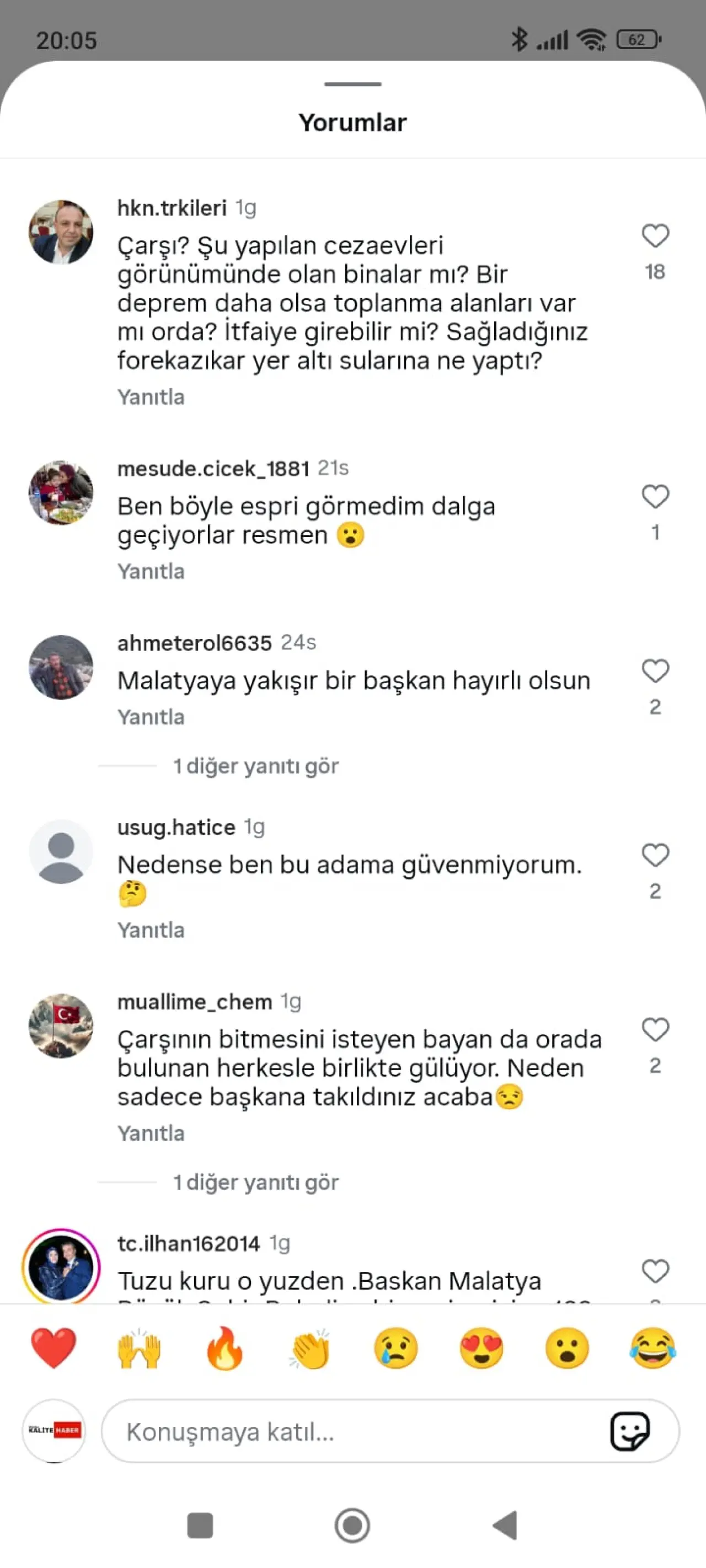 Videonun altına ve farklı sosyal medya platformlarına yapılan yorumlarda vatandaşlar, Başkan Sami Er’e yönelik eleştirilerini sert bir şekilde dile getirdi. Malatya halkı, uzun süredir tamamlanmayan merkez çarşı projesi nedeniyle duyduğu sabırsızlığı ve öfkeyi açıkça ifade etti. Yorumlardan bazıları şöyle: