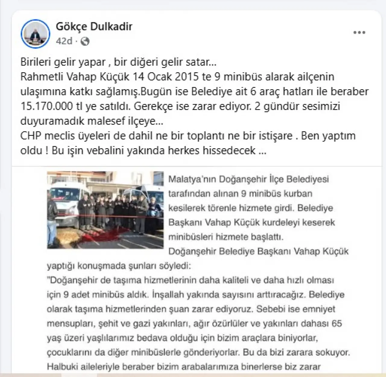 Gözler şimdi Doğanşehir Belediyesi’nden gelecek olası bir açıklamaya çevrilirken, ilçede “ulaşım krizi” başlığı altında başlayan bu tartışmanın önümüzdeki günlerde daha da büyümesi bekleniyor.