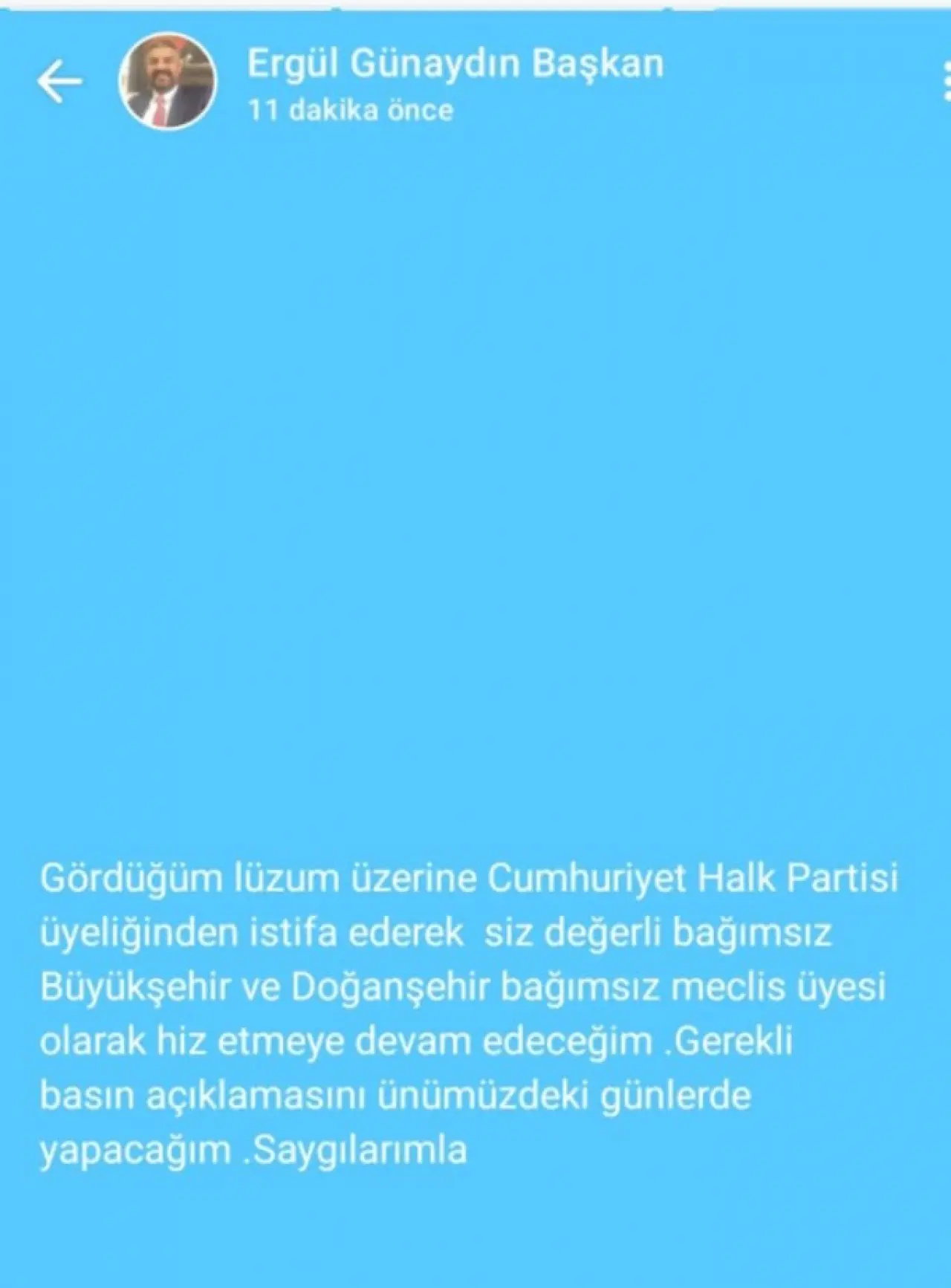 Doğanşehir Belediye Meclisi Üyesi Ergül Günaydın, Cumhuriyet Halk Partisi’nden istifa etti. İstifanın ardından kamuoyunda dolaşan “belediye başkan yardımcılığı verilmediği için istifa etti” iddialarına sert bir dille yanıt veren Ergül Günaydın, bu söylemlerin gerçeği yansıtmadığını belirtti.