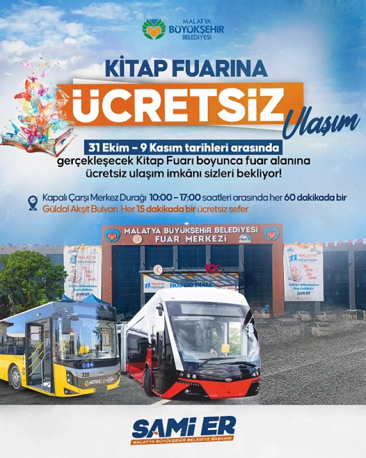 Kenan Kaya ( Özel Haber) - Malatya Büyükşehir Belediyesi, 11. Malatya Anadolu Kitap ve Kültür Fuarı kapsamında, 31 Ekim – 9 Kasım tarihleri arasında fuar alanına gidiş-dönüşlerin ücretsiz olacağını duyurmuştu. Kapalı Çarşı Merkez durağından 10:00 – 17:00 saatleri arasında her 15 dakikada bir Güldal Akşit Bulvarı hattından ücretsiz servis sağlanacağı ilan edilmişti. Belediye açıklamalarında, Başkan Sami Er’in talimatıyla halkın fuara rahat ulaşımı sağlanacağı vurgulanmış, “Kitap ve kültür etkinliklerine katılımı artırmak için tüm önlemler alındı” denilmişti. Belediye boy boy duyurular yapı hatta ilanlar vermişti. Ama anlaşılan hiçte öyle olmuyor.