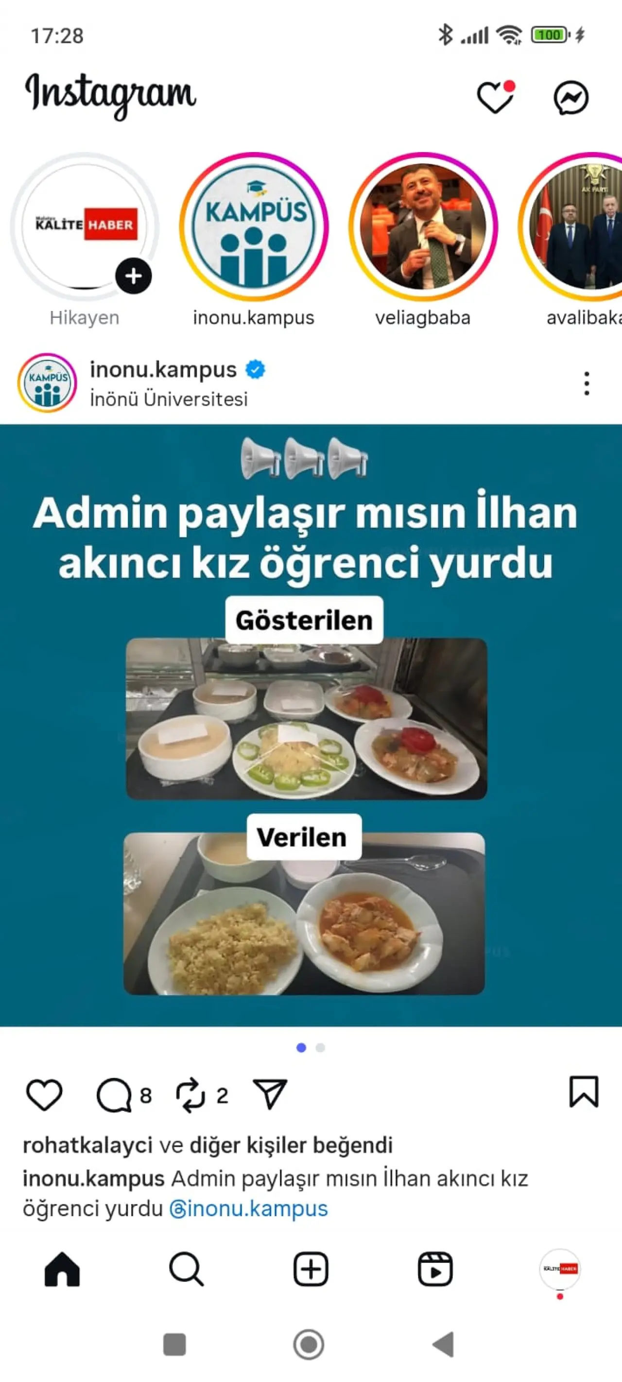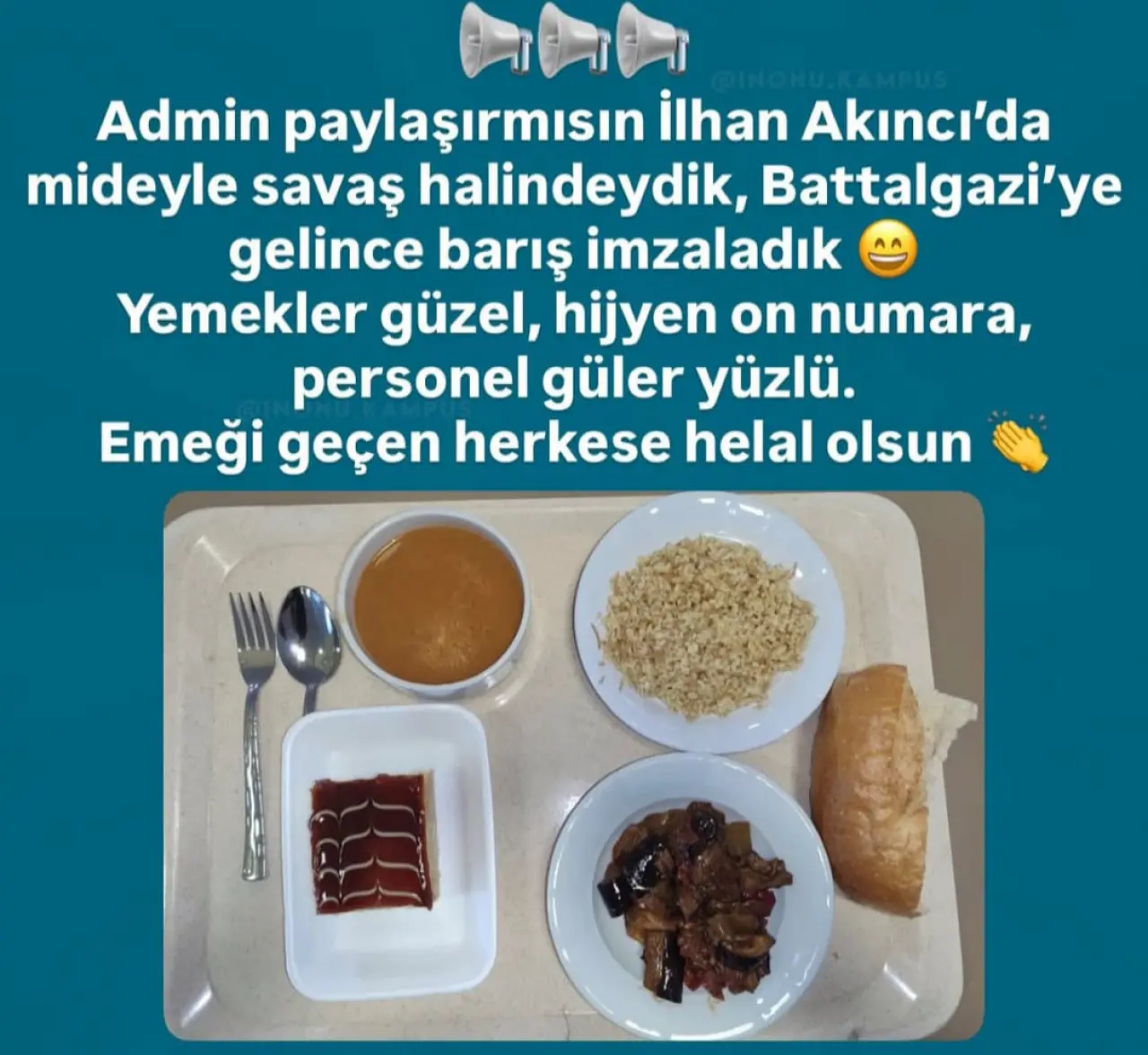 Öğrenciler, yurtlarda sunulan yemeklerin kalitesizliğini sosyal medyadan duyurmaya çalışıyor. İnönü Üniversitesi’nin sosyal medyanın en güçlü platformu İnönü Güncel’den aldığımız bilgilere göre, kahvaltılarda çürük zeytinler, öğle ve akşam yemeklerinde ise pişmemiş tavuk ve bozuk yiyecekler önlerine konuyor. Porsiyon diye verilen yemekler ise adeta “yarım porsiyon” niteliğinde; öğrenciler, çelik tabaklarda sunulan bu yetersiz yemeklerle günlerini geçirmek zorunda bırakılıyor. Sosyal medyada paylaşılan fotoğraf ve videolarda, yemeklerin sağlıksız ve yetersiz olduğu net bir şekilde görülüyor.
