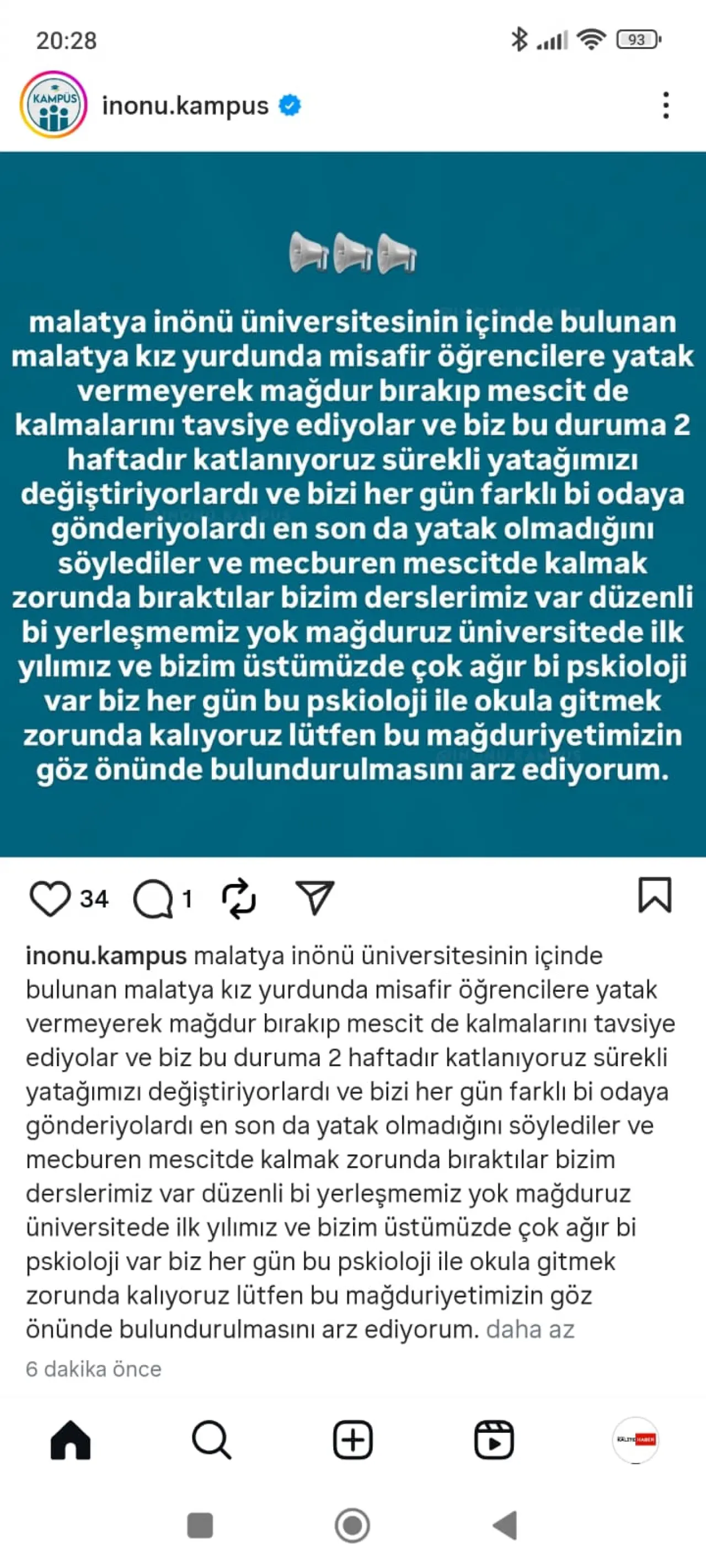 Barınma sorunları da öğrencilerin hayatını zorlaştırıyor. İnönü Güncel paylaşımlarında yorumlara zor durumda olduklarını yazan öğrendiler, Yer bulamadıkları için bazı öğrenciler, mecburen mescitlerde veya okulun farklı alanlarında konaklamak zorunda kalıyor. “Misafir öğrenciyiz ama burada misafirliğimiz bile güvence altında değil. Yatacak yer yok diyerek, bizi mecburen mescitlerde yatırıyorlar, kaldığımız yerler güvenli değil” sözleri, yaşanan sıkıntının boyutunu gözler önüne seriyor.