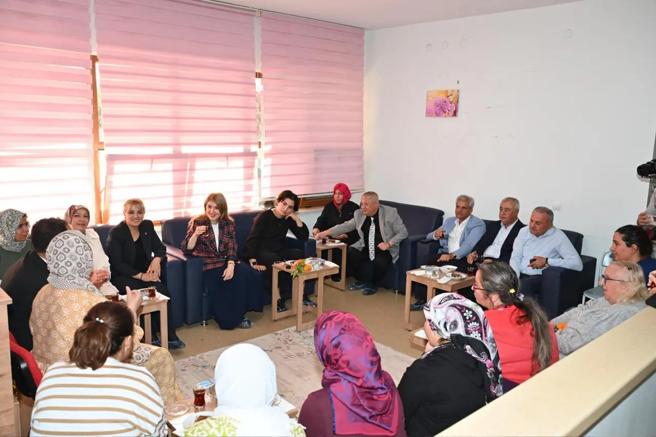 Malatya Yaşam Merkezi’ni de ziyaret eden Ölmeztoprak, sosyal hizmet çalışmalarını inceledi ve el emeği ürünlerle üretime katkı sunan kadınlarla bir araya geldi.