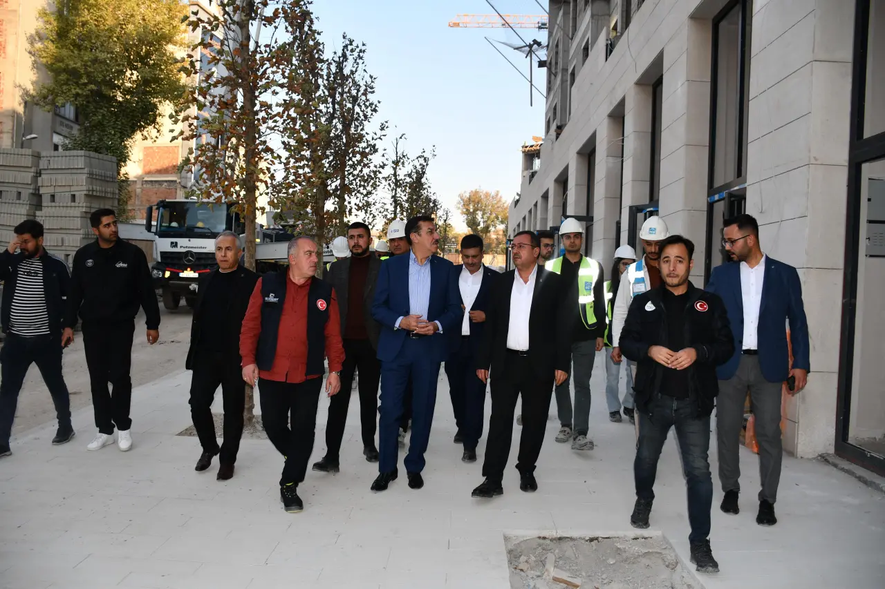 “Bugün il başkanımız, teşkilatımız, müdürlerimiz ve müteahhit firmayla beraber Saray Mahallesi şantiye alanındayız. Burası Malatyamızın prestijli yeni bir çarşısı olacak. Malatyalı hemşehrilerimiz her gün yatıp kalktığında bir bloğun ve işyerinin yükseldiğini görüyor,” diyen Tüfenkci, projenin şehir için önemine dikkat çekti.