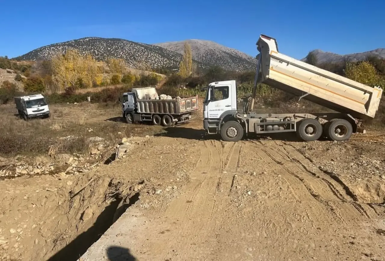 Taşduvar ve Yol Malzeme Serimi: Polatdere, Polat ve Günedoğru mahallelerinde sürdürülen çalışmalarla yollar daha dayanıklı hale getiriliyor.