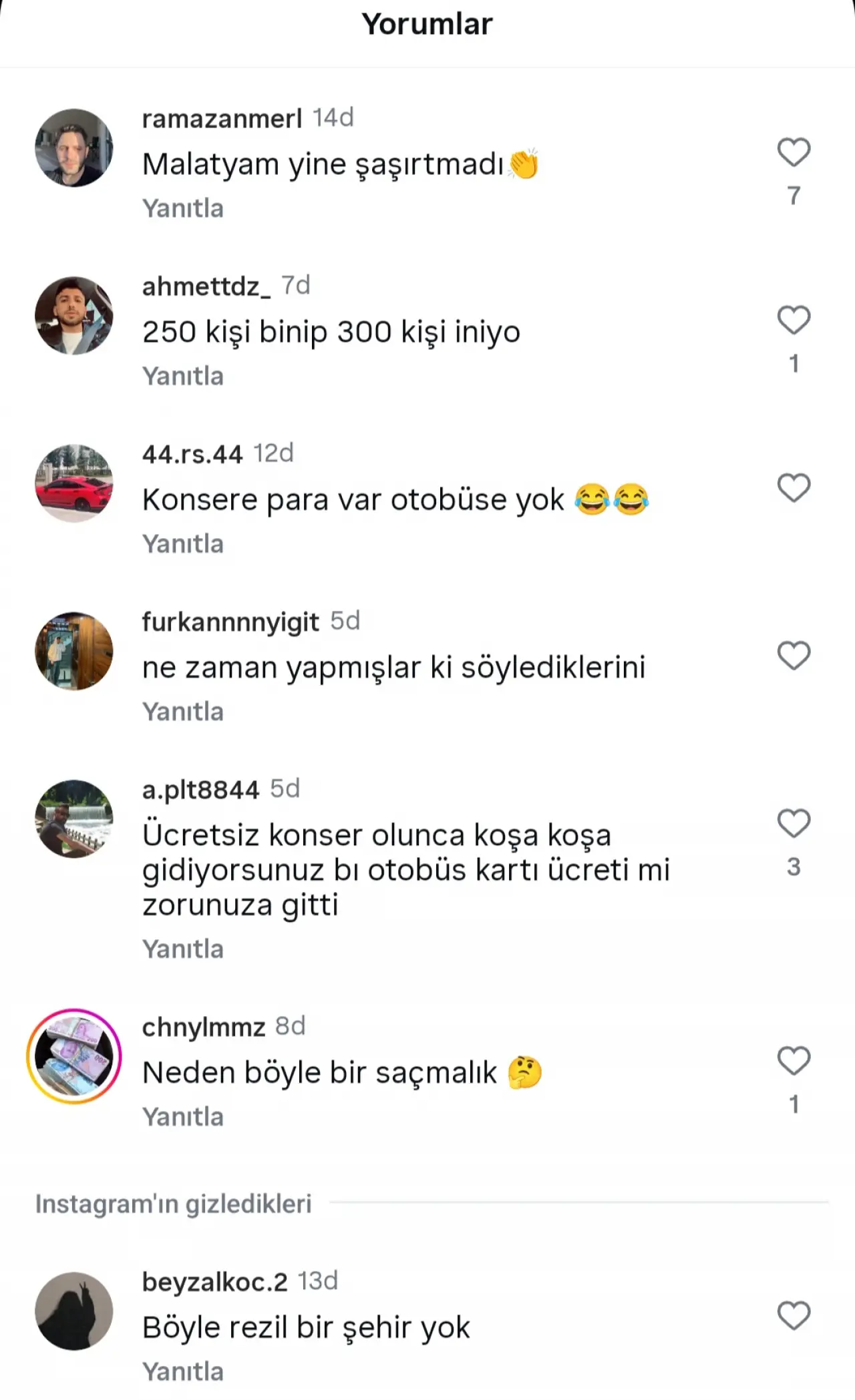 Malatya Büyükşehir Belediye Başkanlığı, festival etkinliklerine katılan öğrencilerin konser sonrası yurtlarına ücretsiz ulaşım sağlayacağını duyurmuştu. Ancak konserin bitiminde öğrenciler, beklenmedik bir şekilde ücret ödemek zorunda bırakıldı.