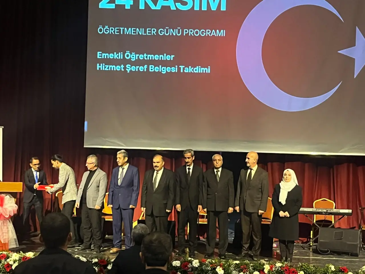 Tören, saygı duruşu ve İstiklâl Marşı ile başladı. Ardından Abdulkadir Eriş Güzel Sanatlar Lisesi öğrencisi Asu Hanım Özalp’ın seslendirdiği “Ben Öğretmen Olmak İstiyorum” şiiri, salonda duygu seli oluşturdu.