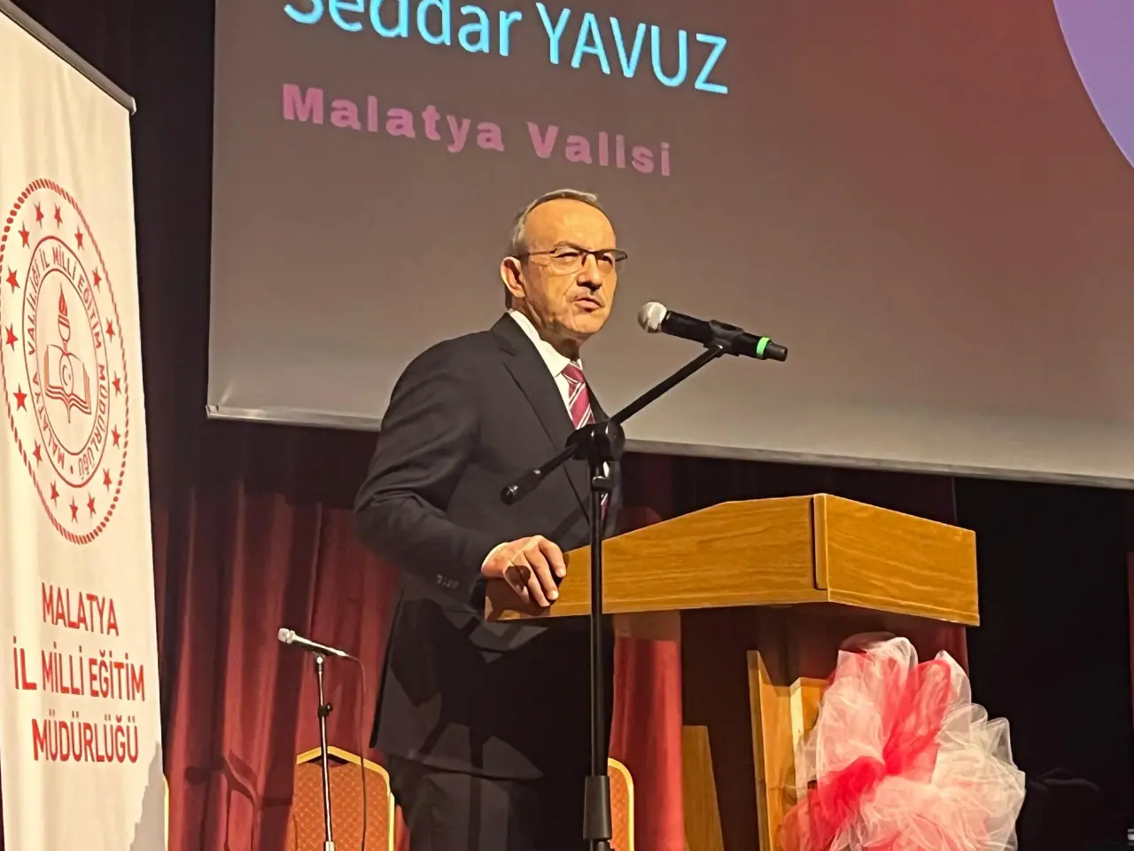Malatya Valisi Seddar Yavuz, sahneye çıktığında salondaki atmosfer tamamen değişti. Vali Yavuz, kendi çocukluk yıllarından örnekler vererek öğretmenlerin insan hayatındaki dönüştürücü etkisini içten bir dille anlattı.