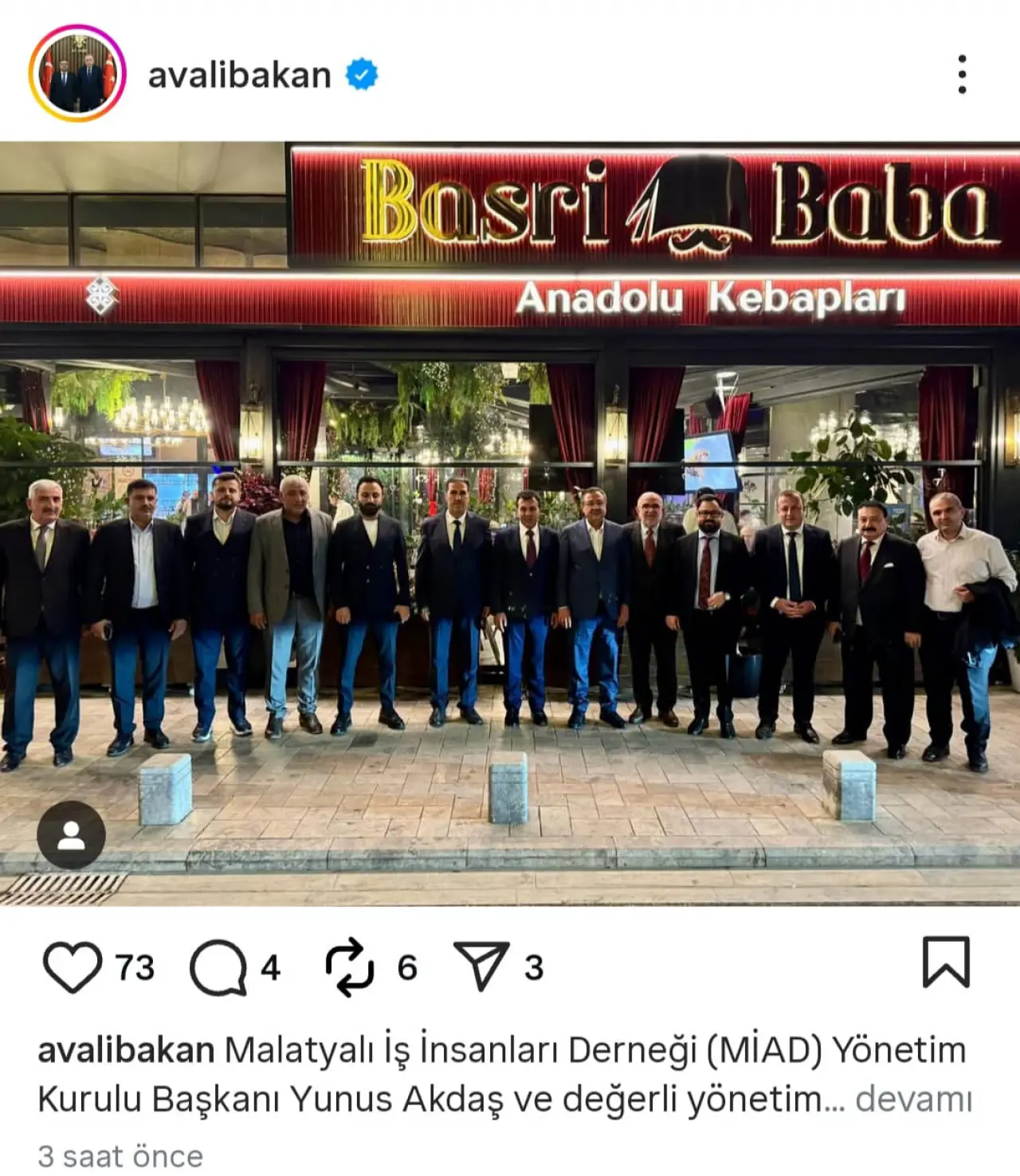 Ak Parti Malatya İl Başkanı Ali Bakan etkinlik sonrasında MİAD tarafından verilen akşam yemeğine katılım sağlayarak MİAD yönetim kurulu üyeleri ile biraraya geldi ve bunu sosyal medya hesabından paylaştı.